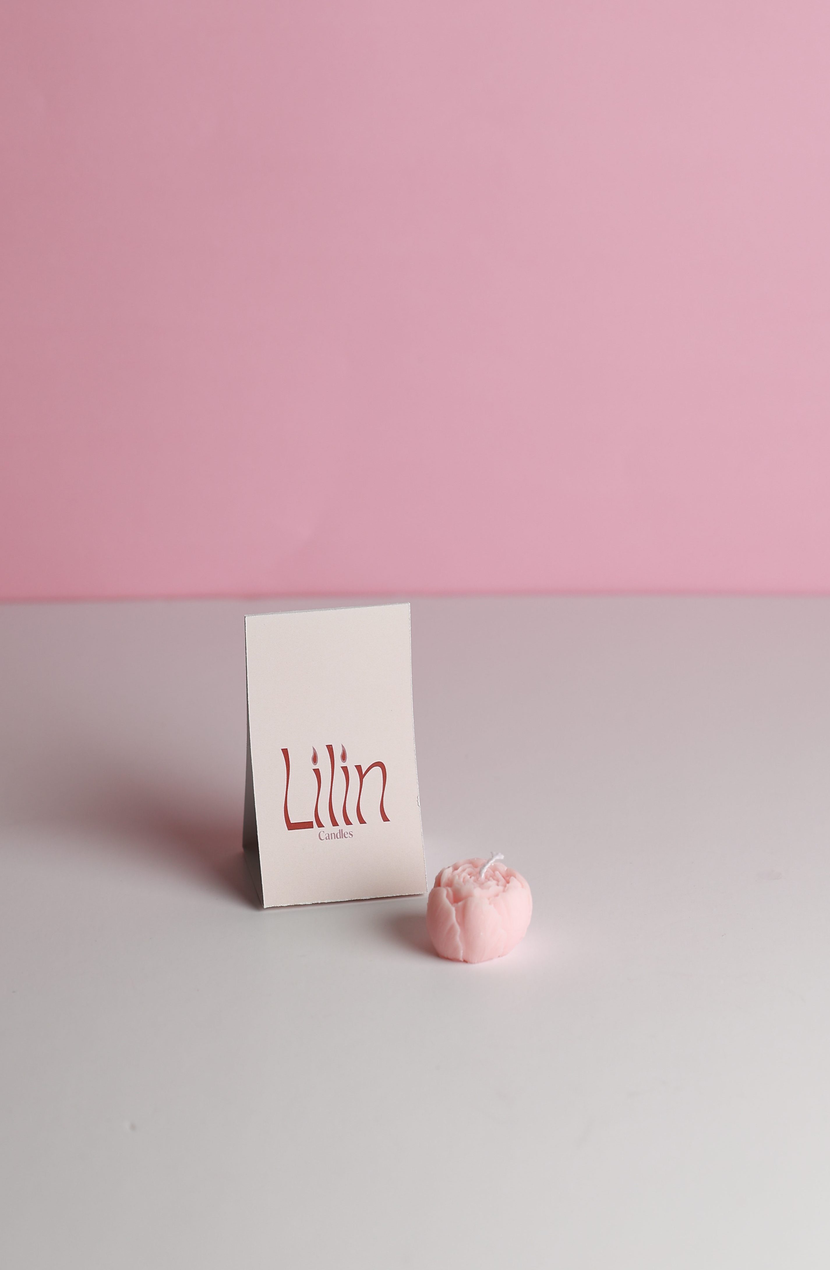 Mini flower candle in paper packaging choose your logo on the paper.شمعة وردة ميني بتغليف ورقي مع امكانية اختيار الثيم .